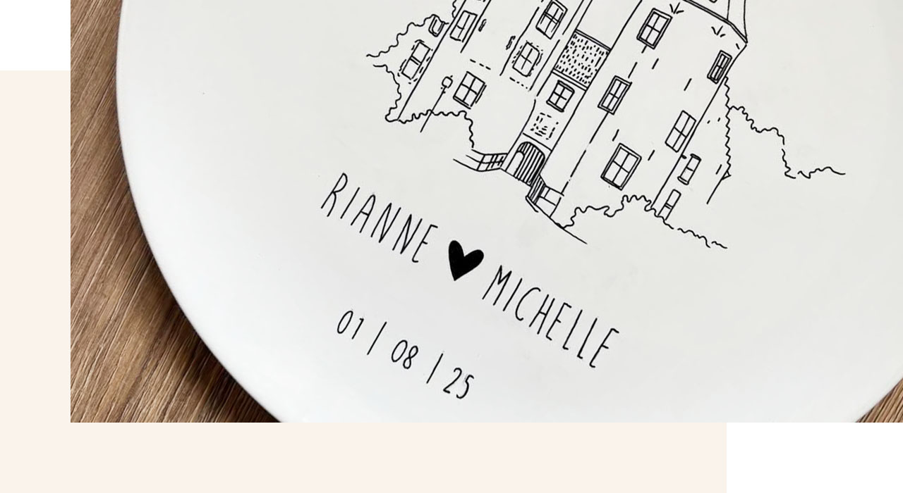 Wil je niet aankomen met een standaard envelop of keukenaccessoire? Kies dan voor een origineel huwelijkscadeau dat écht verrast. Onze met de hand geïllustreerde bordjes zijn een uniek en persoonlijk geschenk dat het bruidspaar nog jarenlang zal koesteren.